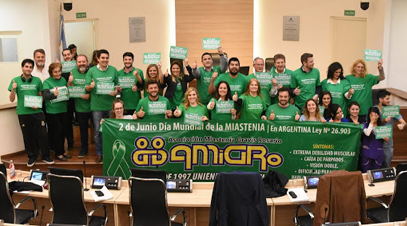 La presidenta de Miastenia Gravis Rosario, Graciela Nocera, es la impulsora de la Ley Nacional 26.903, que establece en Argentina, a los días que comprenden esta fecha, la Semana de la Miastenia Gravis. En este marco, se encuentra en marcha la campaña Uniendo Fuerzas para difundir esta enfermedad.