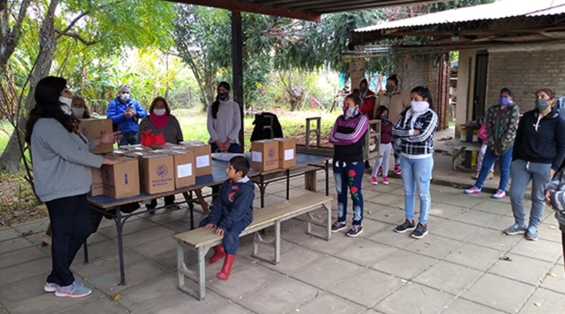 Además de alimentos, el Municipio de Rosario entregó publicaciones culturales, ropa de abrigo, repelentes y, en el marco del Año Belgraniano, una bandera argentina y otra de la ciudad para la escuela Marcos Sastre.
