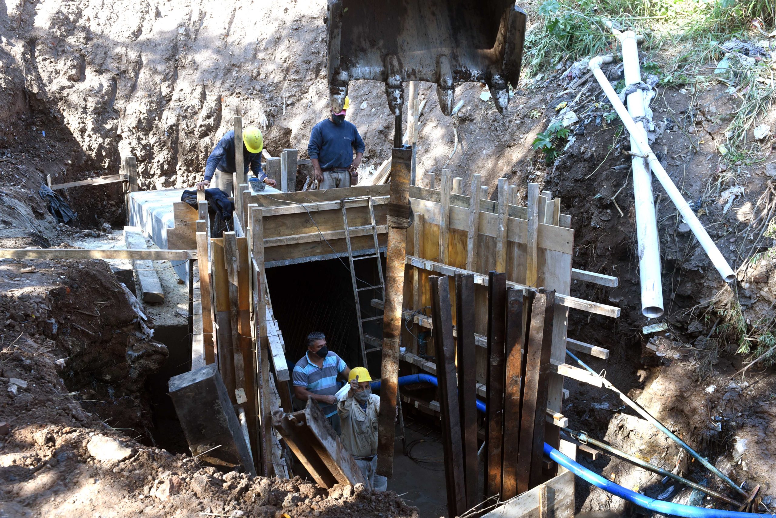 Cuadrillas de Defensa Civil están llevando a cabo importantes tareas de reparación en un desagüe de El Mangrullo para evitar desmoronamientos e inundaciones.