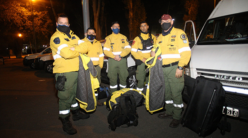 Más de cincuenta agentes operaron durante este domingo para atacar los focos de incendios. El secretario de Gobierno los recibió en el Centro de Aislamiento del Hipódromo donde se alojan.