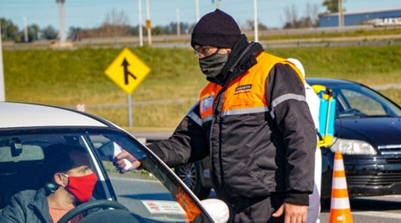 Agentes municipales realizan diariamente operativos en Oroño y Battle y Ordoñez para tomar la temperatura y fiscalizar la documentación de personas que llegan a la ciudad.