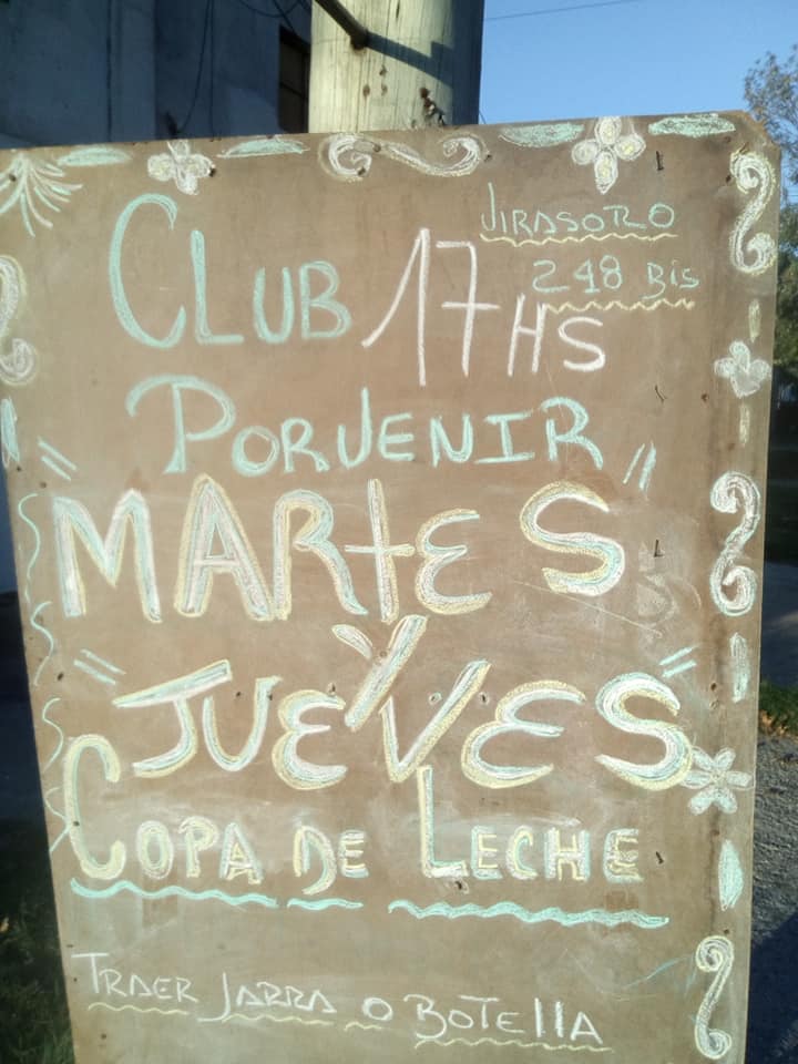 A partir de mayo, los días martes y jueves, a las 17 horas, el Club Porvenir brinda con gran dedicación una copa de leche para los vecinos de su barrio, hoy con sus necesidades básicas insatisfechas.