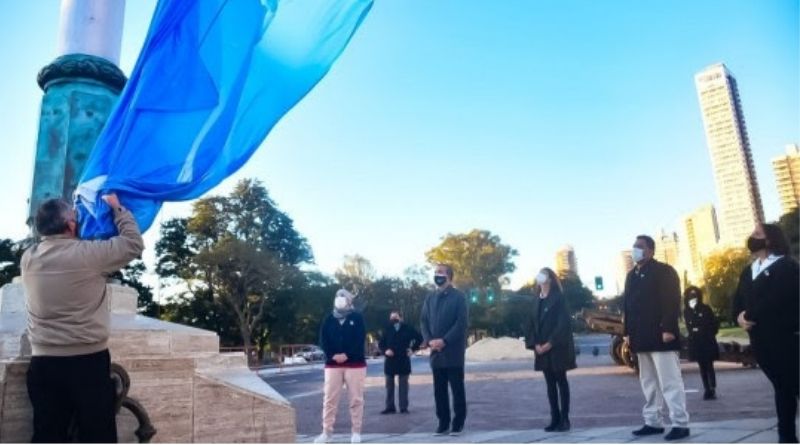 Este 25 de mayo por la mañana, el intendente Pablo Javkin encabezó el tradicional izamiento por el 211 aniversario de la Revolución de Mayo. Sin más actos debido a la situación sanitaria, Javkin estuvo acompañado por un pequeño grupo de trabajadores de la salud municipal a quienes homenajeó.