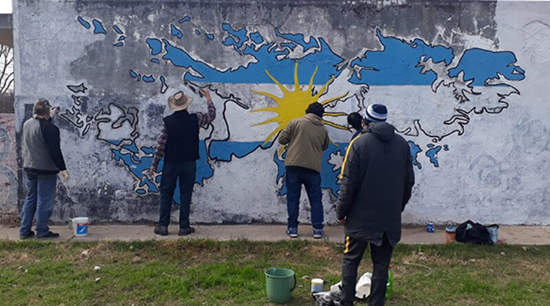 Durante la jornada se lleva adelante la restauración del mural Héroes de Malvinas.