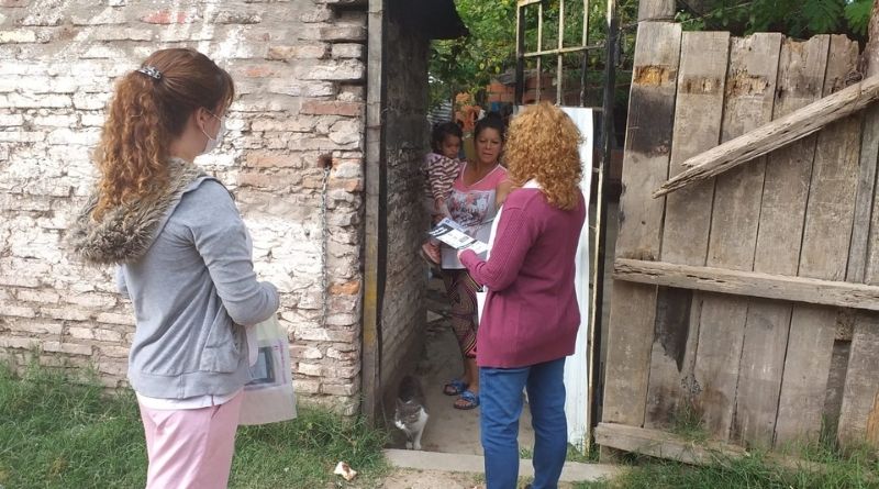 Equipos del municipales, junto a referentes del barrio, recorrieron casa por casa distintos sectores de barrio El Mangrullo para brindar información preventiva e invitar a los vecinos y vecinas a descacharrar sus hogares para evitar el crecimiento del mosquito.